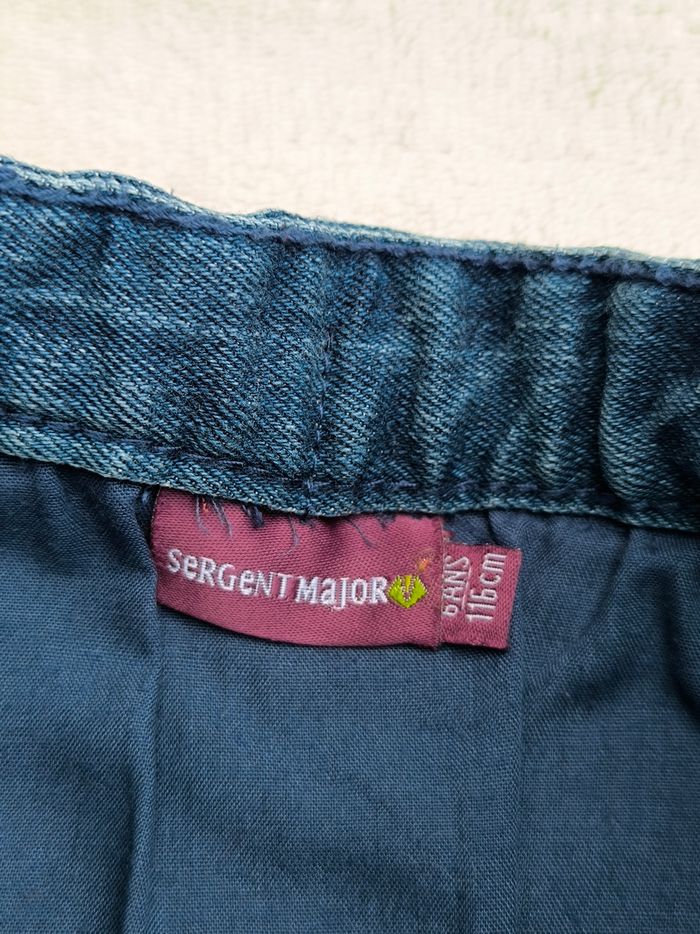 Jupe en jean Marque Sergent Major Taille 6 ans, 116 cm • Coloris bleu • Fermeture par pressions • Taille élastique ajustable • Doublure • Coton En très bon état #evelyne_filles_6ans #evelyne_filles
