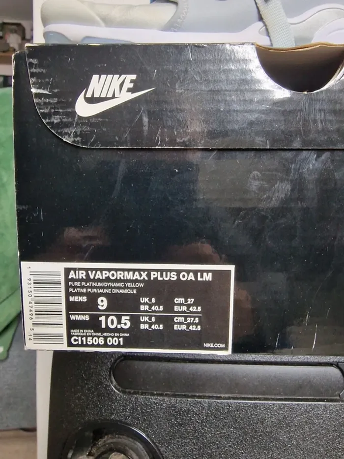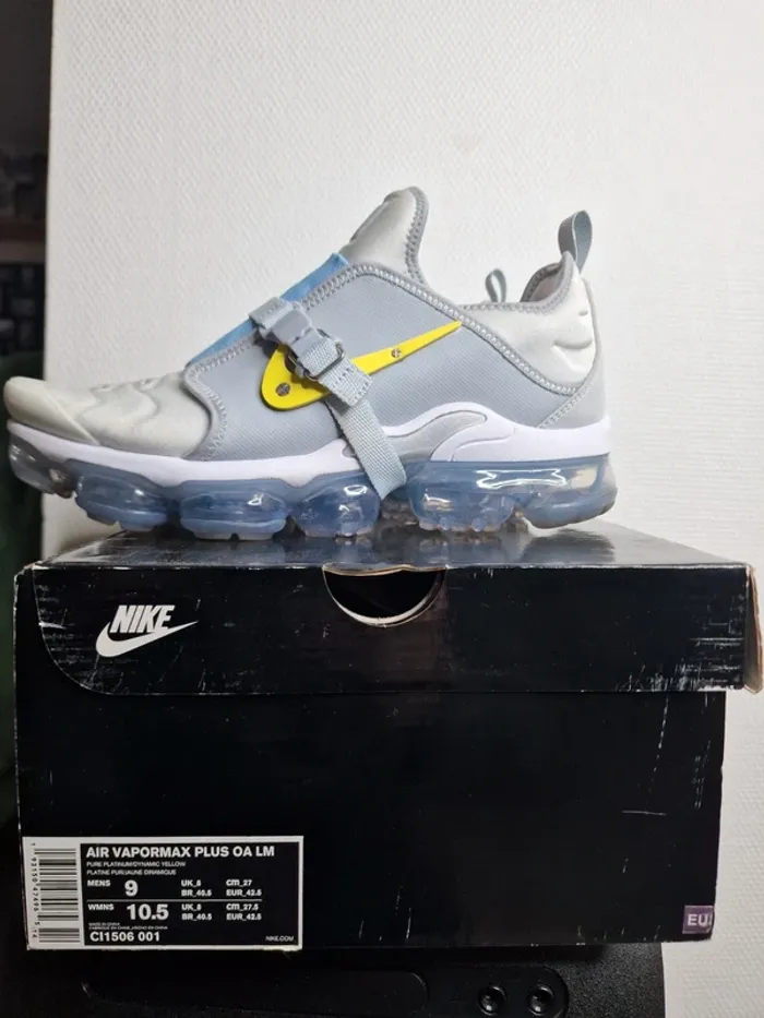 Bonjour à tous ! 😁 Voici une magnifique paire de Nike Vapormax Plus Paris : Travaux en cours ! 😁 La paire a etais porté 2 fois ! 🙂 Pointure : 42.5 Le seul défaut qu'elle sont jaunie à certains endroit photo dans l'annonce ! 😁 Possibilité de changer les logo de couleurs avec une clé qui est compris dans le pack ! 😁 Si vous avais des question ou si vous désirez d'avantage de photo n'hésitez surtout pas ! 😁 Envoie rapide et soignée ! 📦📦 #nike #vapormax