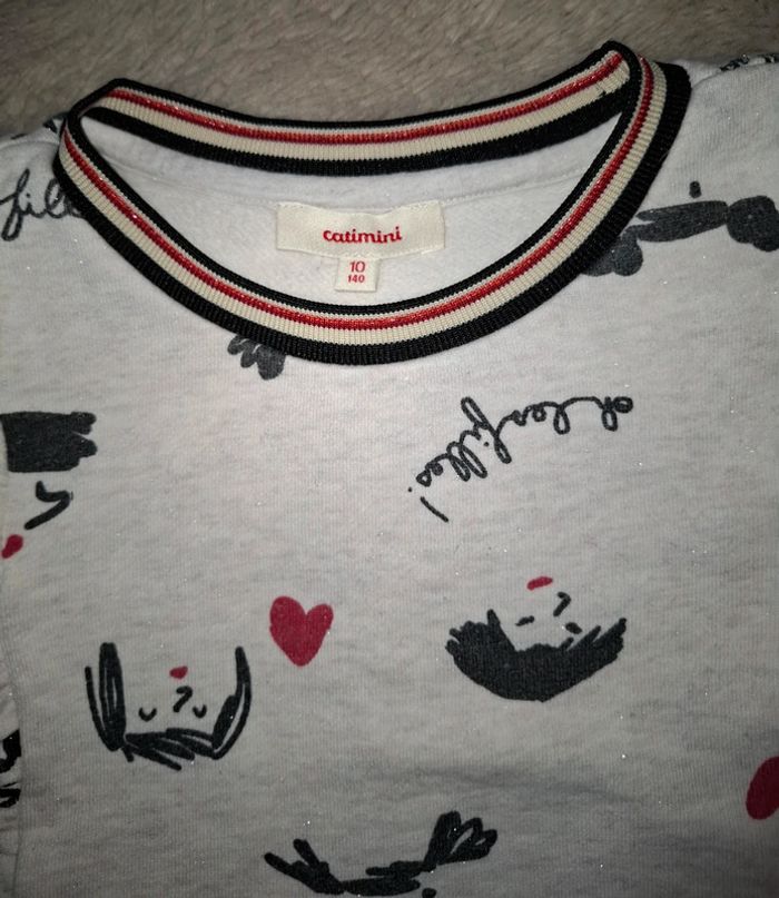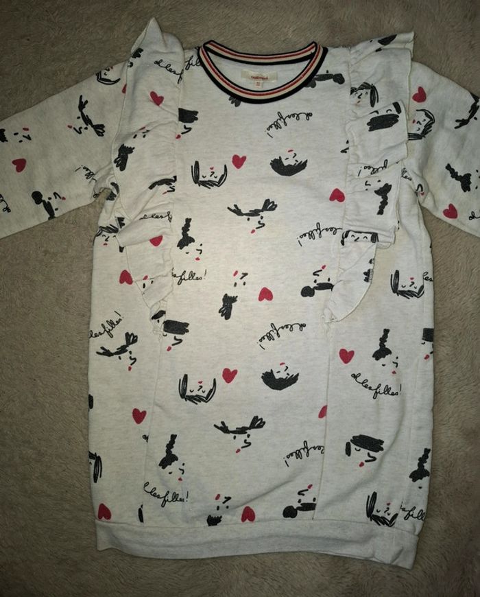 Robe pull manche longue Beige avec des petites filles et des cœurs rouge Catimini 10 ans 140 cm Très bon état Envoi rapide et soigné #ange1911fille10ans