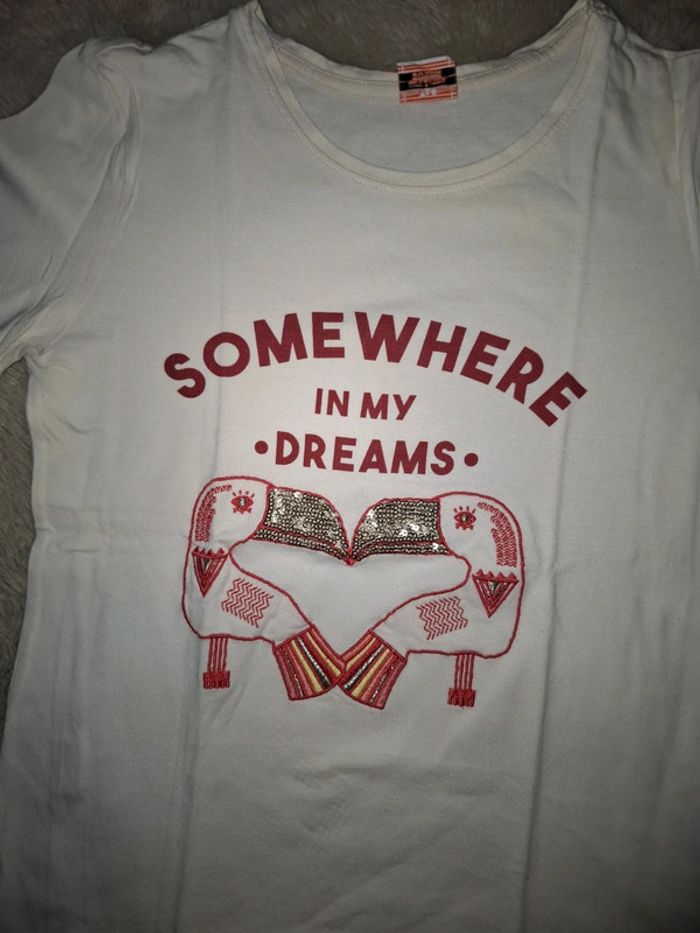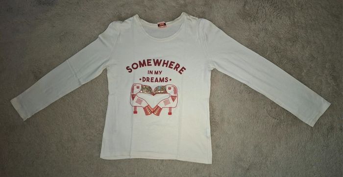 T shirt manche longue Tape à l œil TAO Blanc et rouge Somewhere in my dreams Oiseau pélican toucan 10 ans 140 cm Très bon état Envoi rapide et soigné #ange1911fille10ans