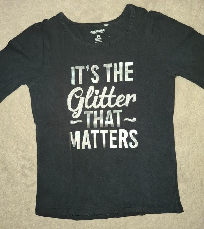 T shirt manche longue Orchestra Noir et blanc It's the glitter that matters 10 ans Très bon état Envoi rapide et soigné #ange1911fille10ans