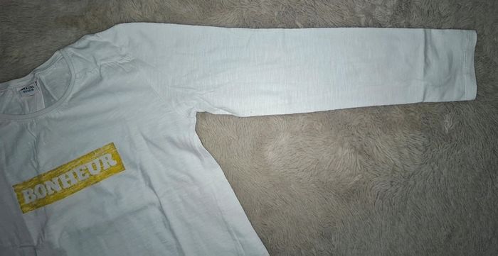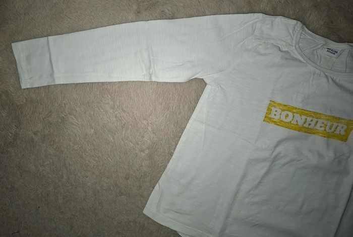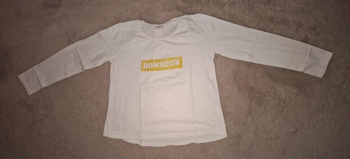 T shirt manche longue Tape à l œil TAO Blanc et jaune Bonheur 10 ans 140 cm Très bon état Envoi rapide et soigné #ange1911fille10ans