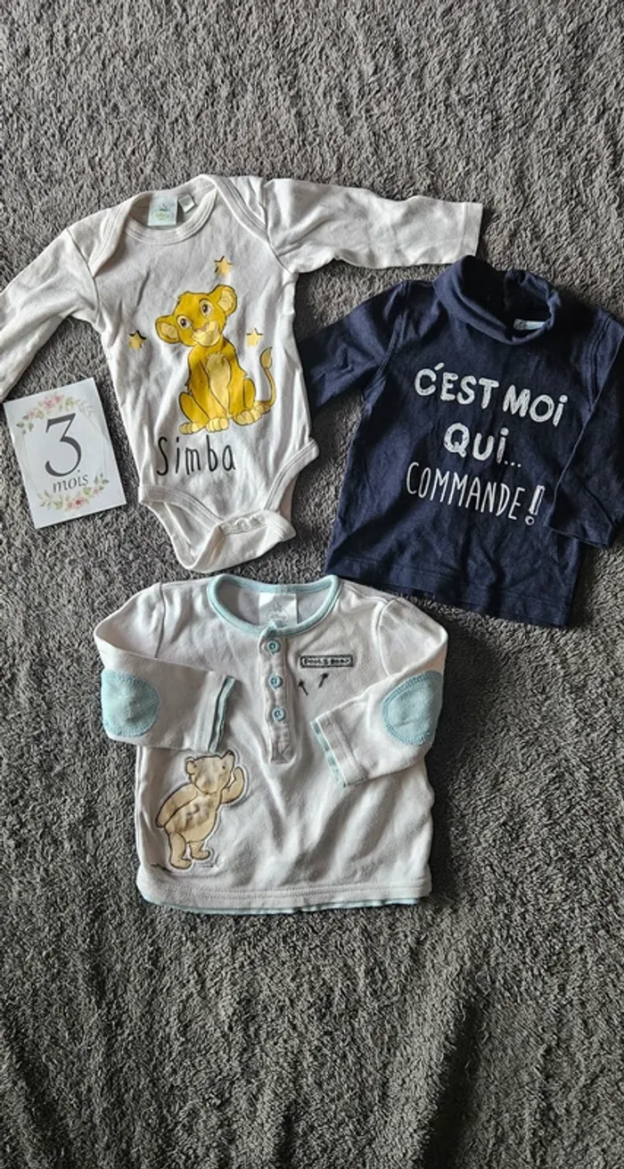 #flygab #3mois_flygab un bodie simba un sous pull "c'est moi qui commande!" un petit pull disney ℹ️ Dans mon Dressing ℹ️ 👗 Femme taille 34/36/38/40 S/M/L 👗 🤰 Grossesse 36/38 🤰 👕 Homme taille 38/40 M 👕 👦 Garçon à partir de bébé 👦 👧 Fille à partir de bébé 👧 ℹ️ Nouveauté régulièrement ℹ️ #garçon #bébé #ensemble #ours #pyjama