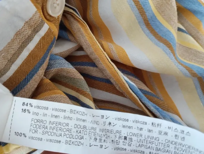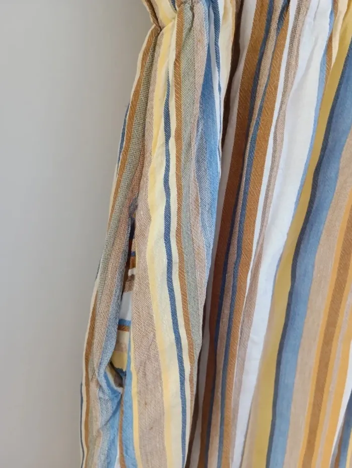 Robe rayures multicolores Zara Trf Buste boutonné, Lien à la taille à ajuster + élastique Viscose et lin, doublée viscose.