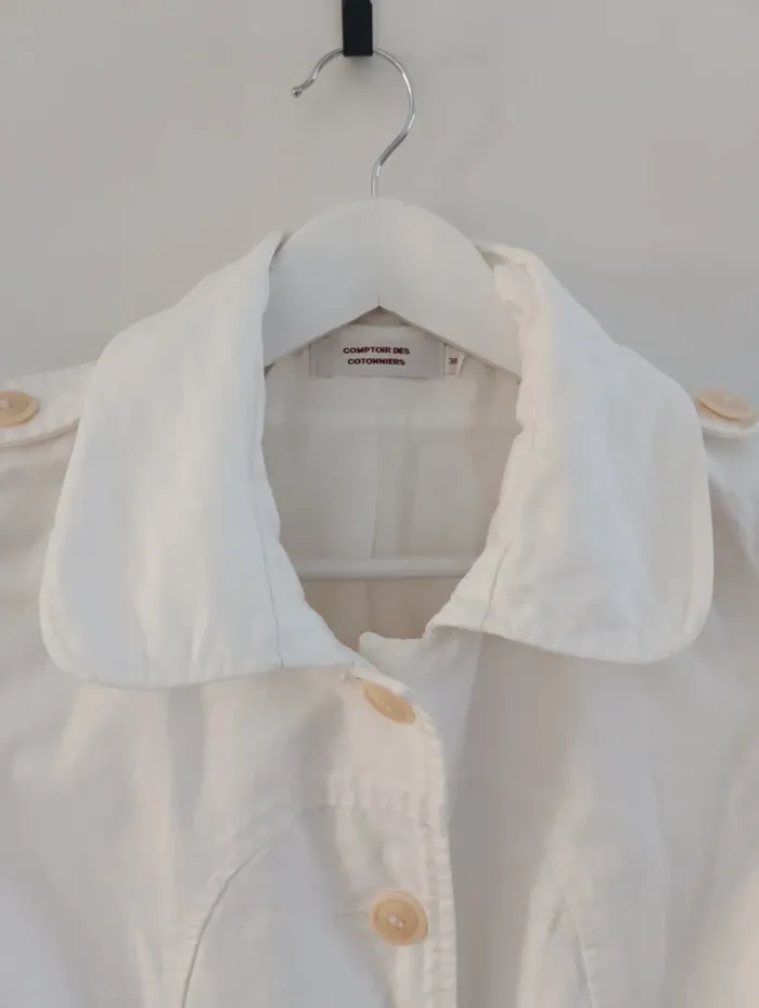 Trench blanc Comptoir des Cotonniers Taille 38 100% coton matière épaisse proche denim Mesures Epaules 37cm Aisselles 47cm Taille 40cm Longueur 95cm