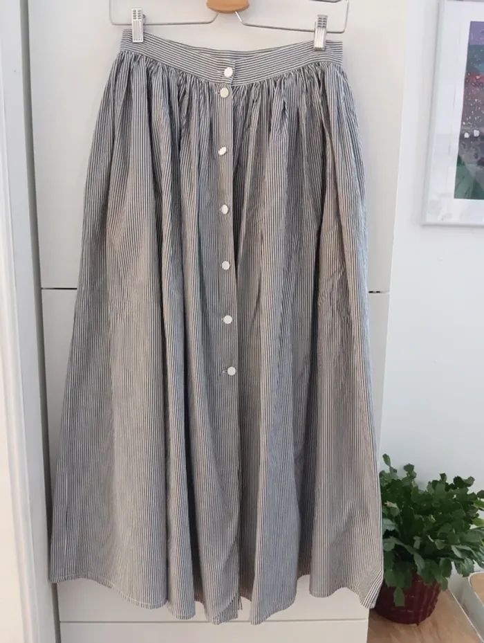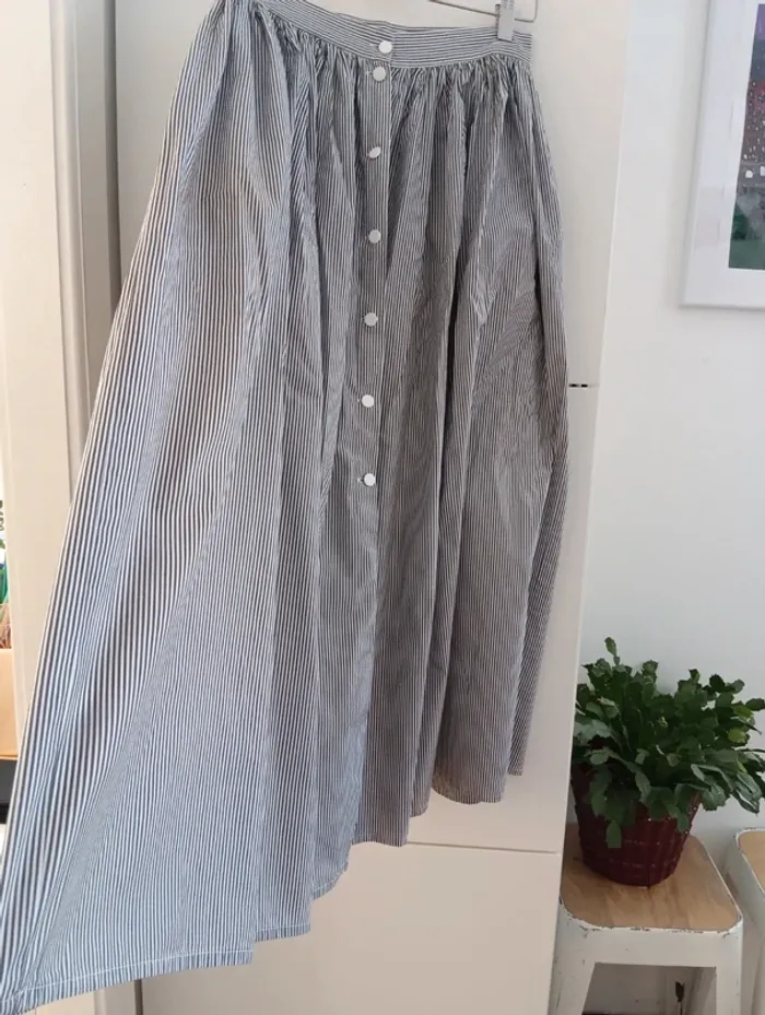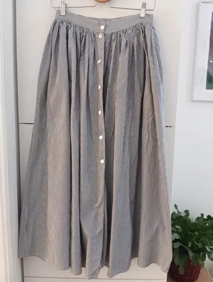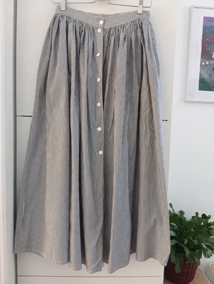 Jupe longue vintage boutonnée fines rayures gris/blanc - photo numéro 1