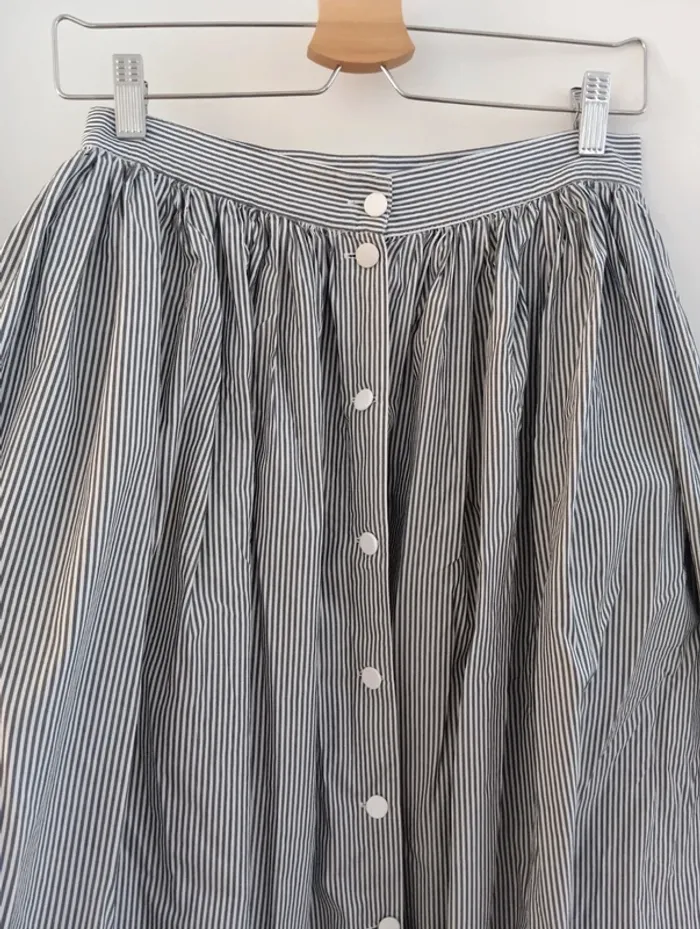 Jupe longue vintage boutonnée fines rayures gris/blanc - photo numéro 2