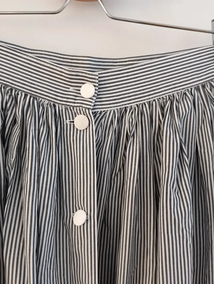 Jupe longue vintage boutonnée fines rayures gris/blanc - photo numéro 5