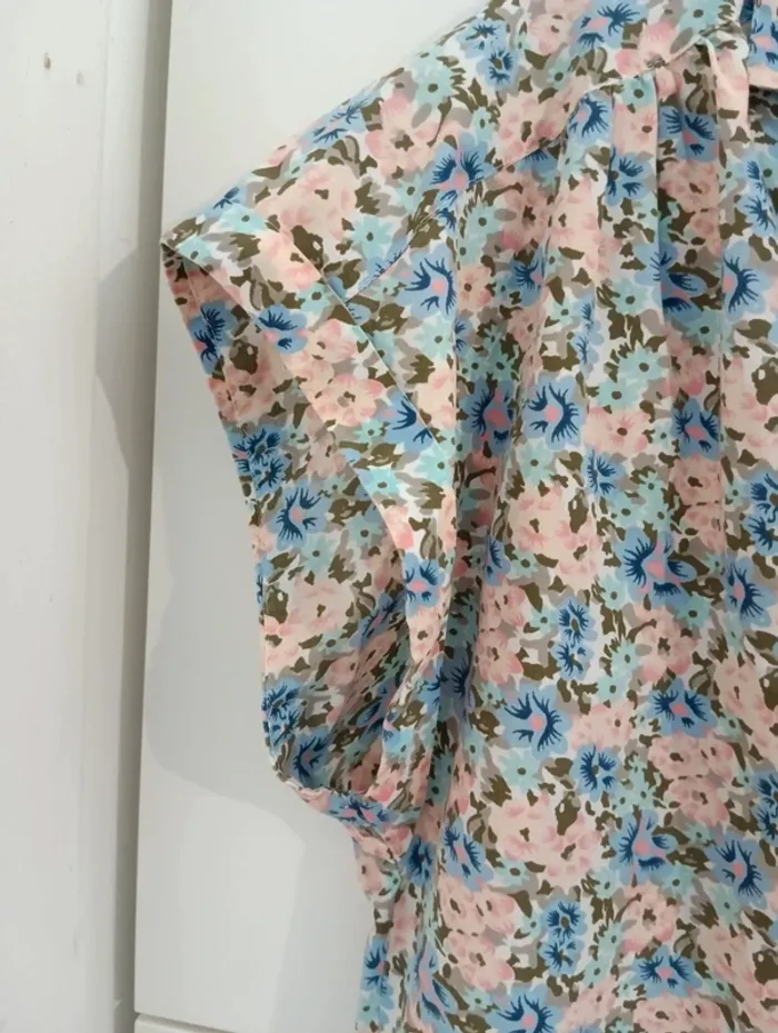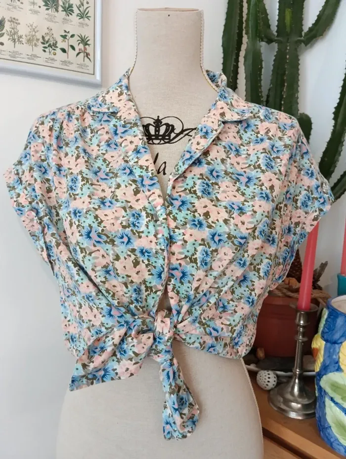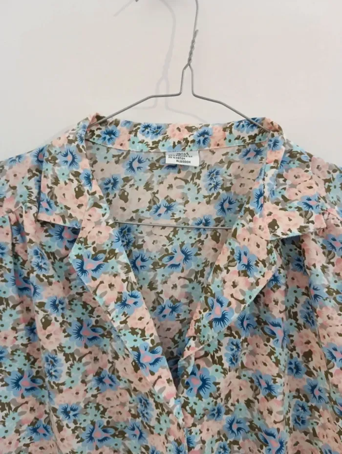 Chemise vintage en coton fleuri Revers aux manches Taille 42/44 Mesures Aisselles 56cm Longueur 67cm