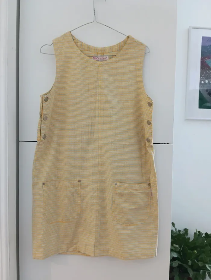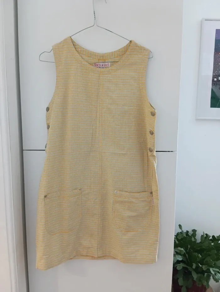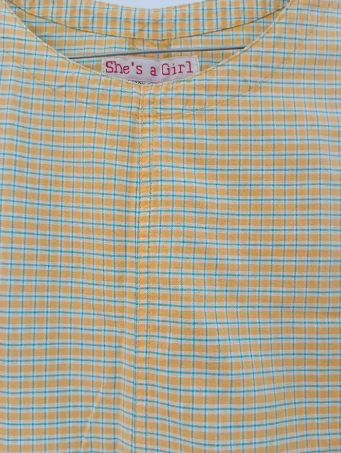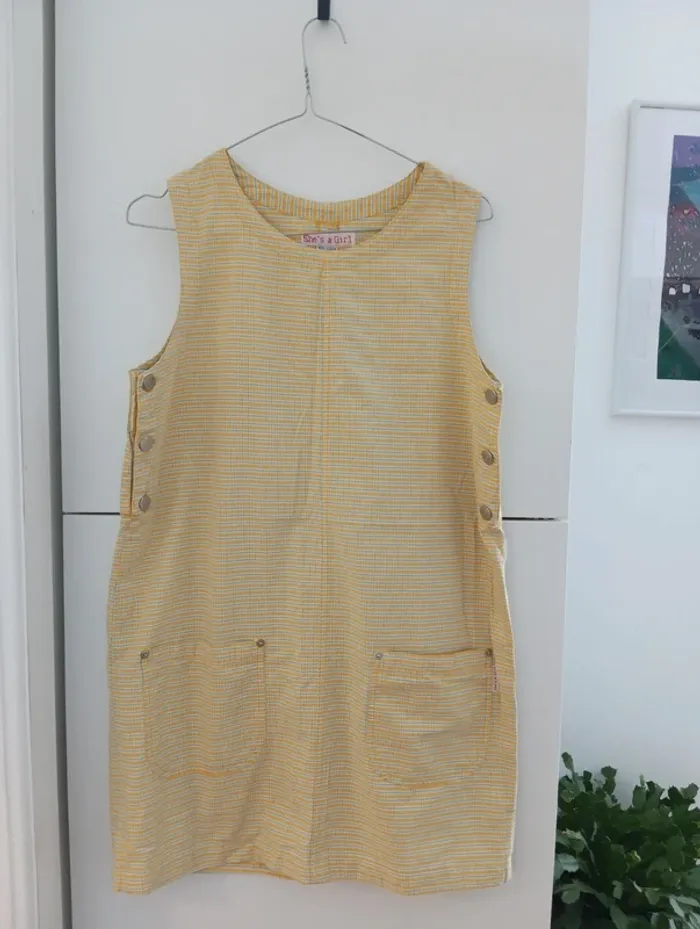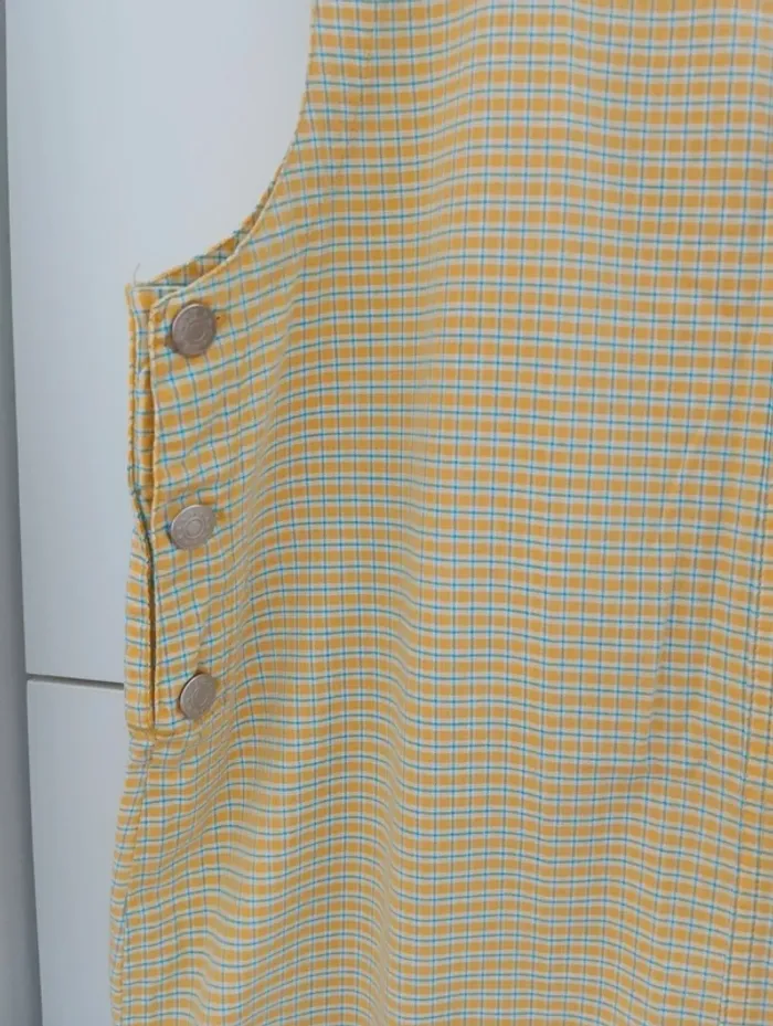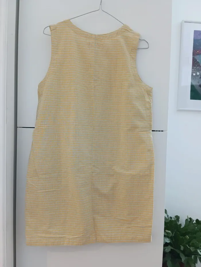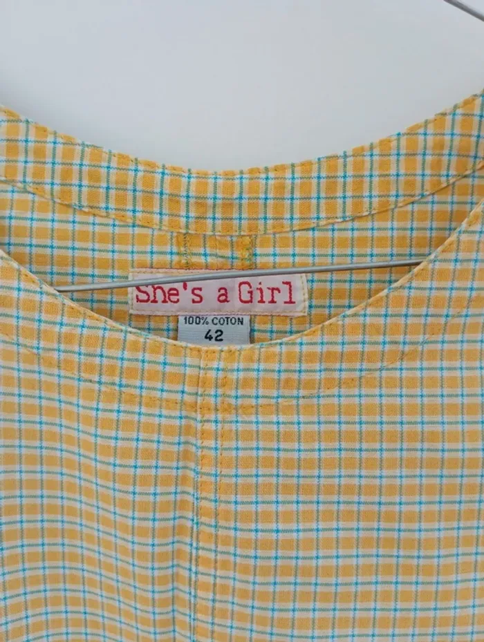 Mini robe droite vintage carreaux taille 40/42 À confirmer avec les mesures selon l'effet souhaité. Coupe droite, légère. Années 90's de la marque She's a girl Boutonnée de chaque côté. 100% coton Mesures Épaules 35cm Aisselles 50cm Longueur 82cm