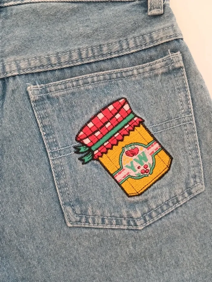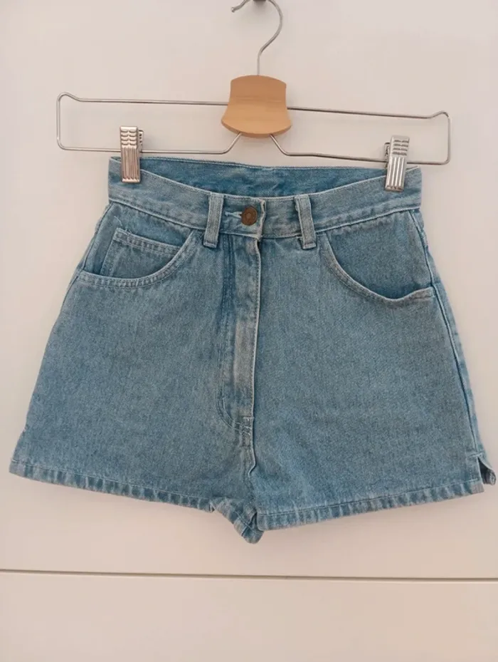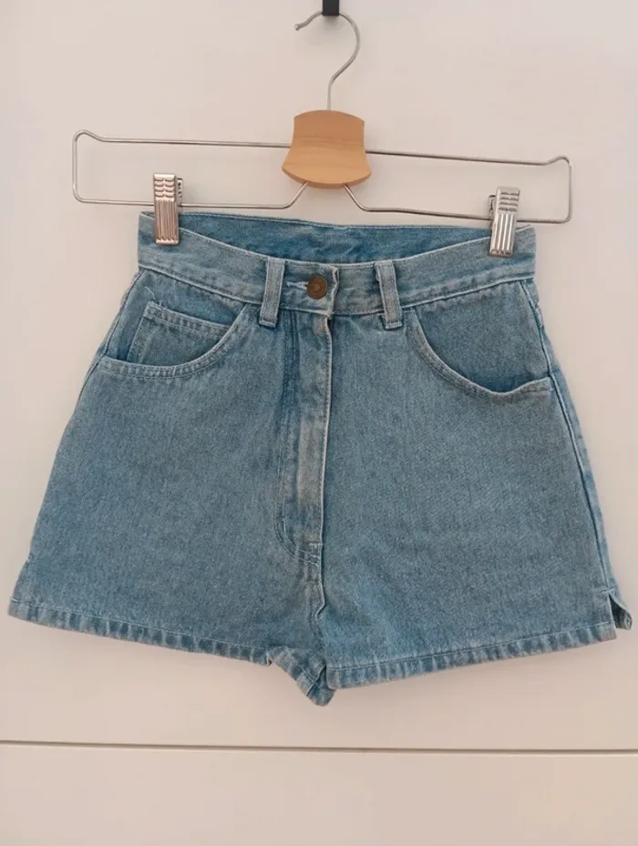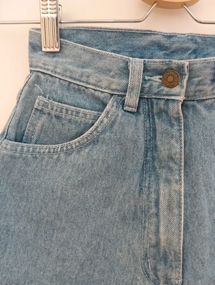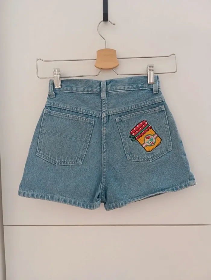 Mini short en jean vintage taille 32 Broderie sur la poche arrière droite. Taille xxs 30/32 estimée à confirmer avec les Mesures Taille 29 cm De la taille à l'entrejambe 29cm Longueur 30cm Fendu de chaque côté.