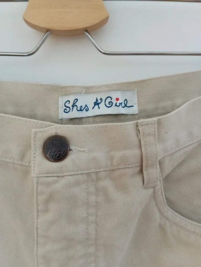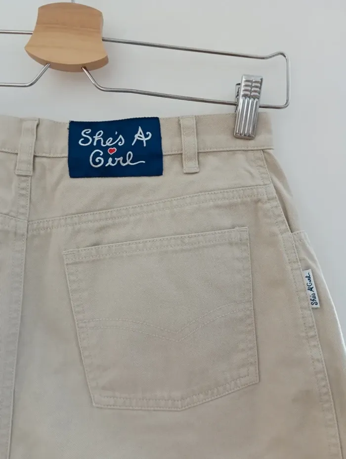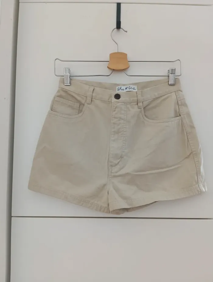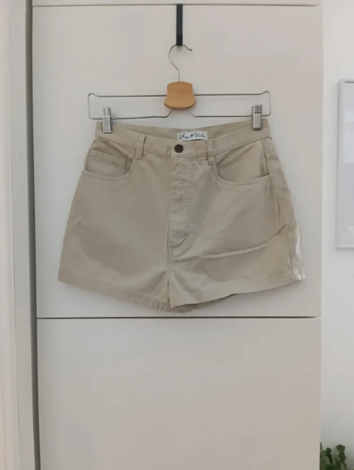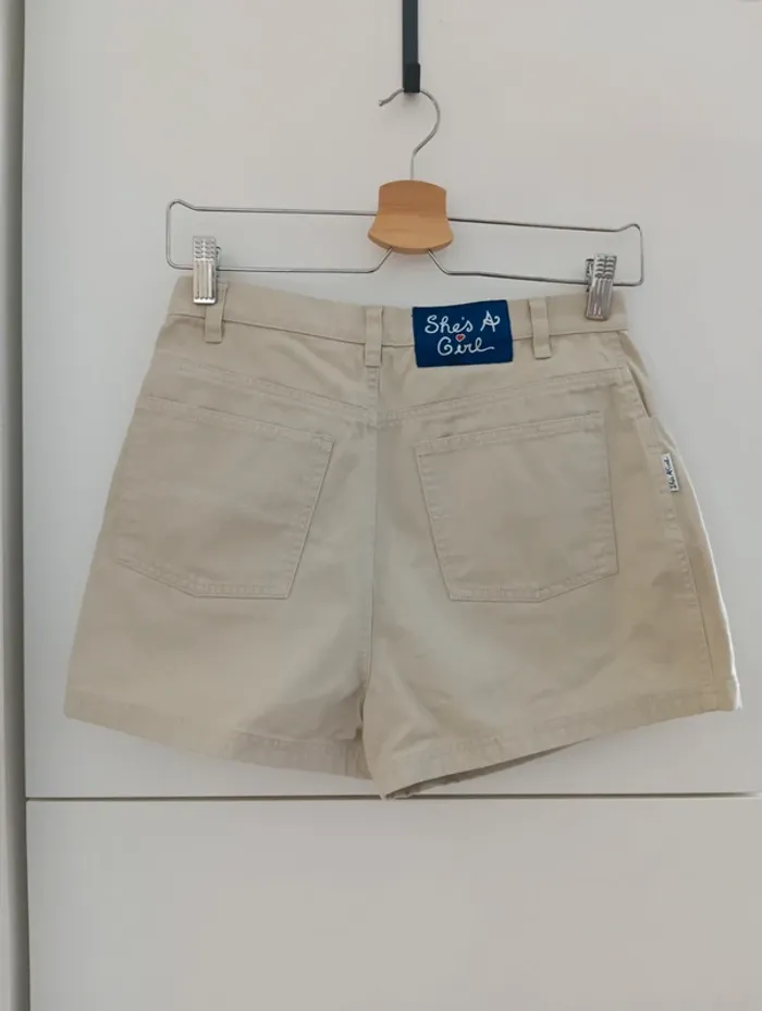 Mini Short denim beige vintage de la marque She's a girl. Une pièce des années 90. Mesures Taille 34cm De la taille à l'entrejambe 30cm Longueur 33cm