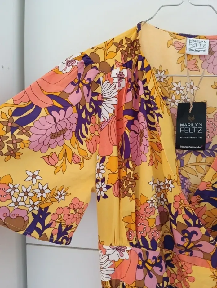 Magnifique robe portefeuille jaune à fleurs neuve - photo numéro 13