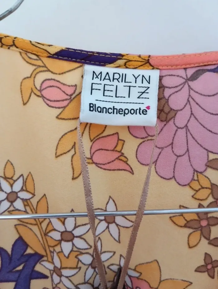 Magnifique robe portefeuille cache coeur jaune à fleurs blancheporte neuve Taille 40 Collection Marilyn Feltz