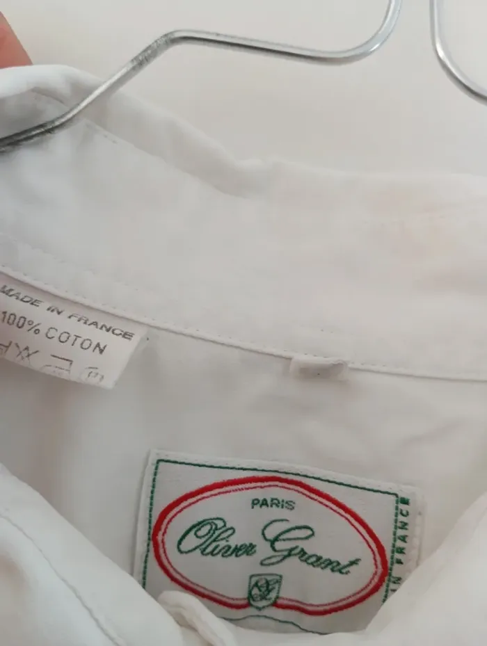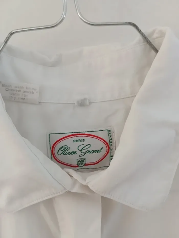 Chemise blanche vintage Oliver Grant 100% coton Fabriquée en France Taille 42 estimée à confirmer avec les mesures Mesures Epaules 48 cm Aisselles 53cm Longueur 64cm