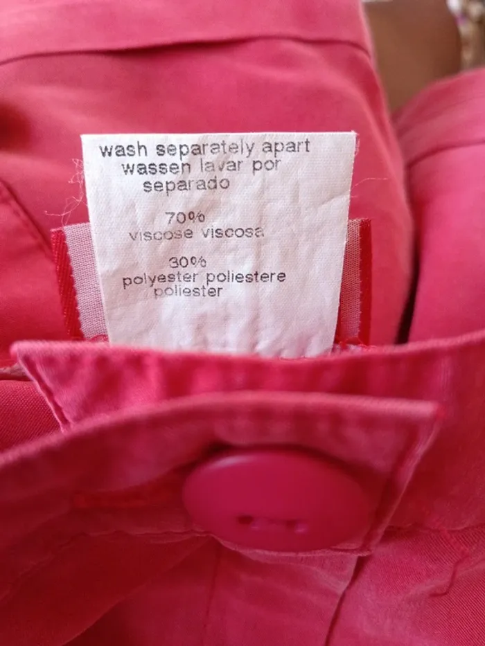 Bermuda vintage rouge framboise, toucher peau de pêche , Revers en bas Taille 34/36 estimée à confirmer avec les mesures Mesures Taille 33cm De la taille à l'entrejambe 33cm Longueur 46cm