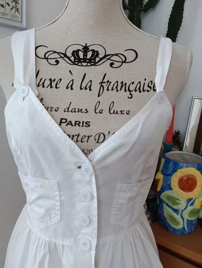 Robe blanche Boutonnée vintage en coton Léger - photo numéro 2