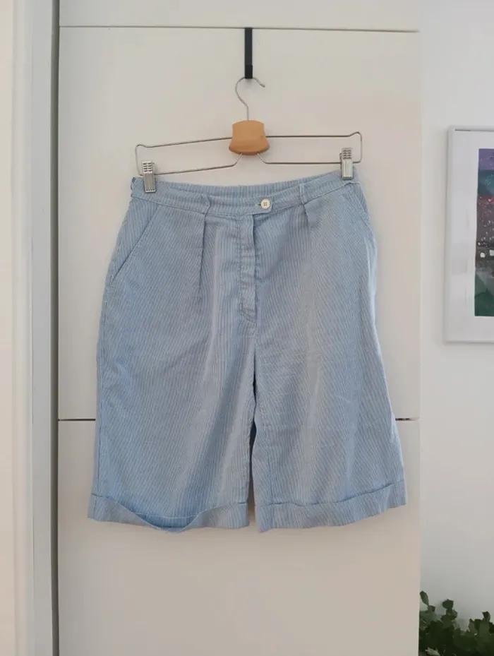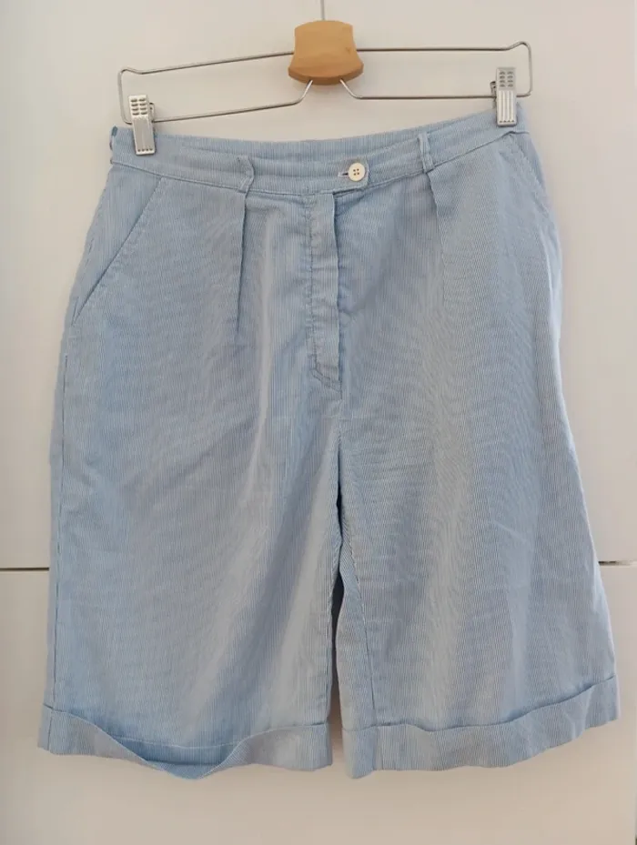 Bermuda vintage à fibres rayures bleues un et blanches - photo numéro 1