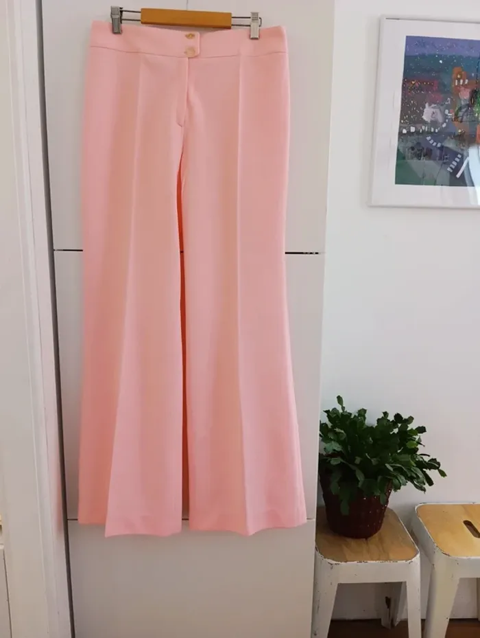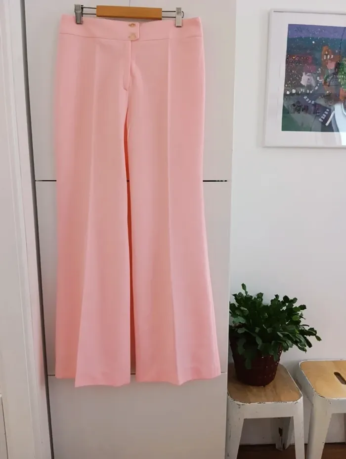 Pantalon vintage rose 70's bas évasé Rose bonbon/barbapapa Mesures Taille 40 cm De la taille à l'entrejambe 27cm Longueur 108cm Largeur bas des jambes 32cm