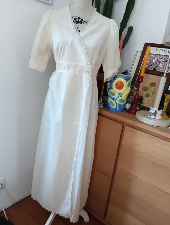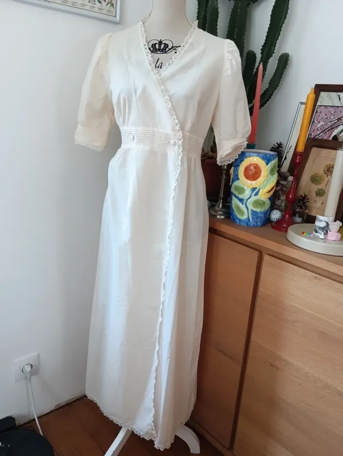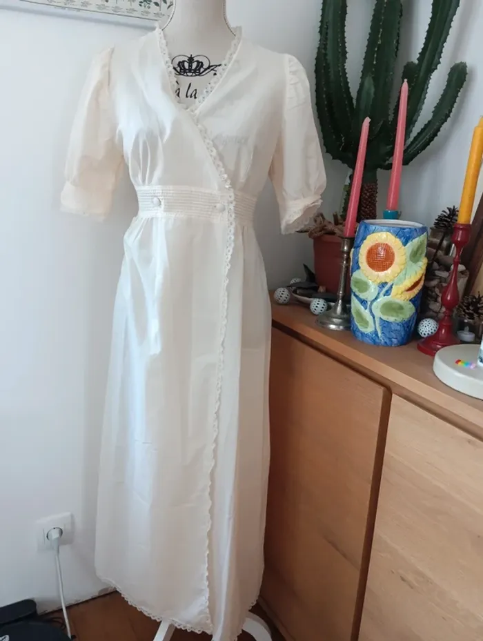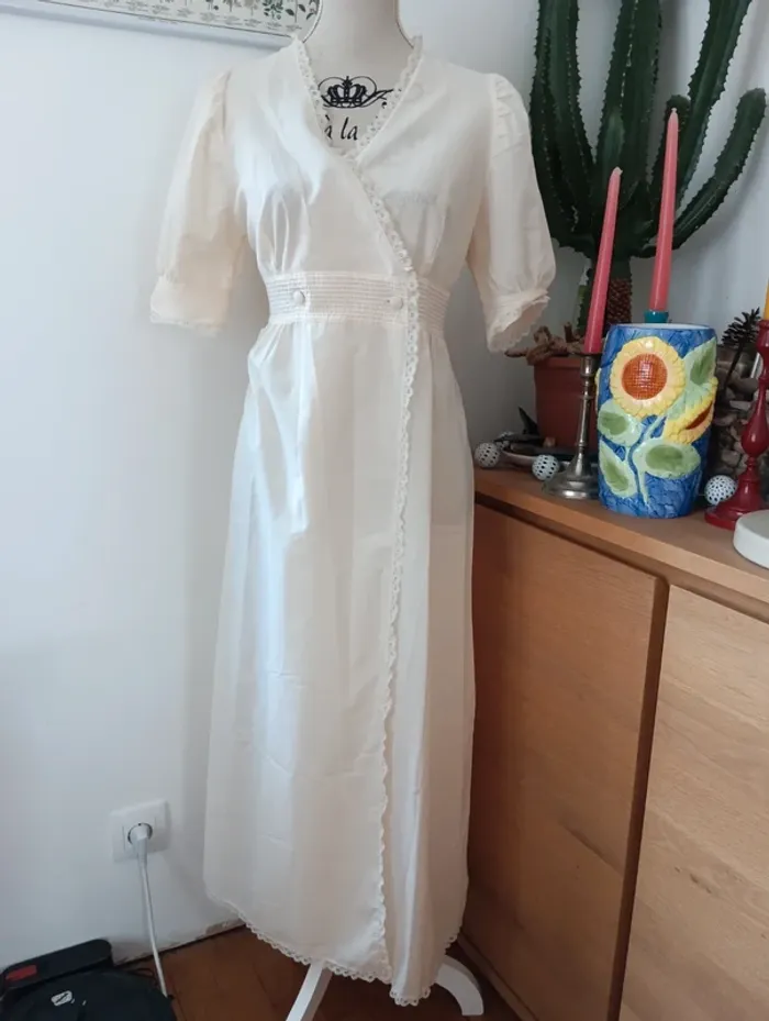 Chemise de nuit,.robe de chambre écrue lingelor made in France - photo numéro 1