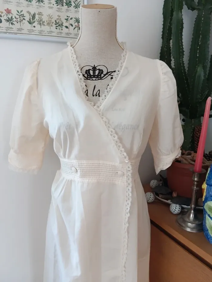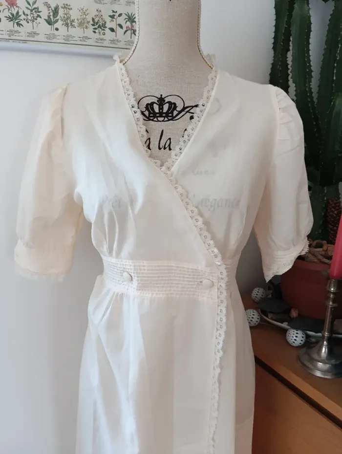 Chemise de nuit,.robe de chambre écrue lingelor made in France - photo numéro 4