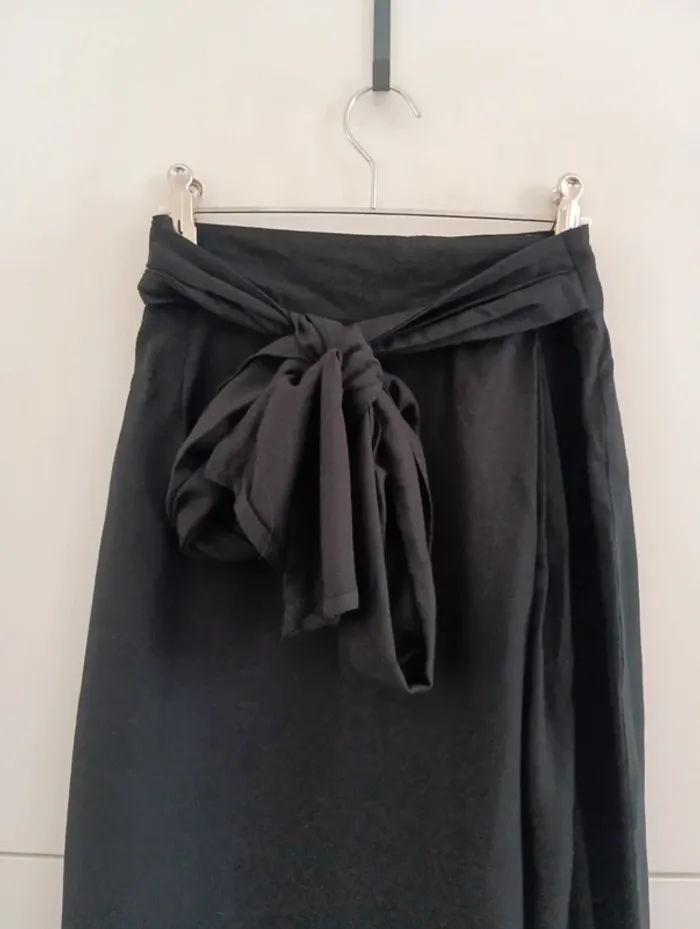 Jupe vintage noire droite effet drapé à nouer - photo numéro 1