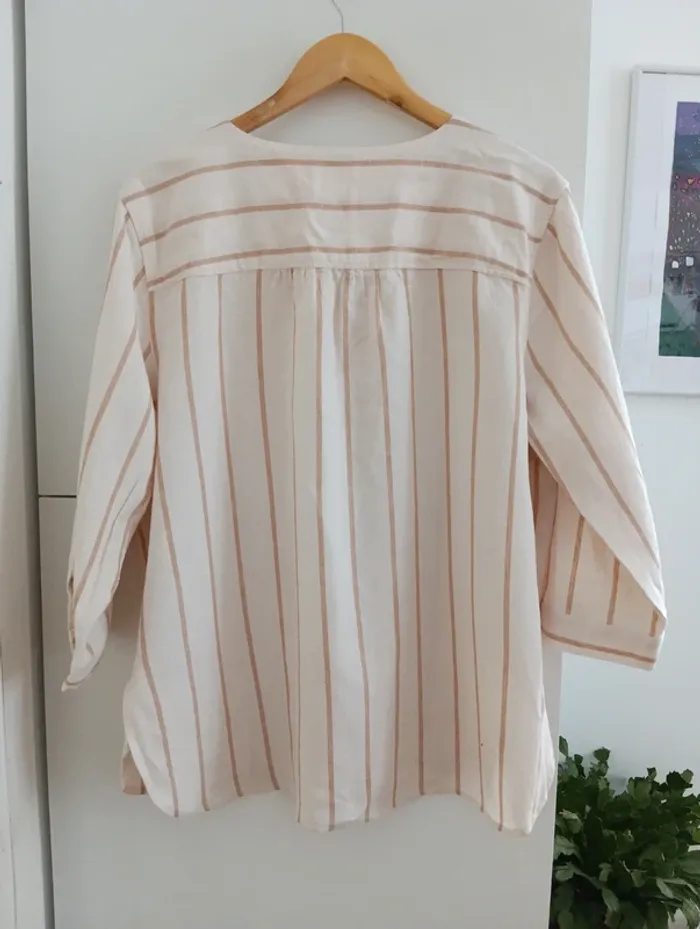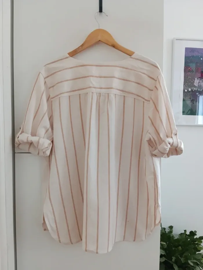 Blouse chemise a rayures beige/écru taille 50 - photo numéro 10