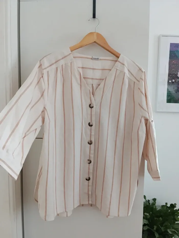 Blouse chemise a rayures beige/écru taille 50 - photo numéro 14