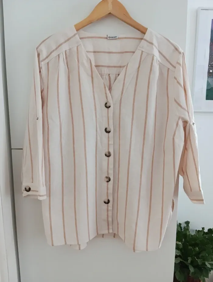 Blouse chemise a rayures beige/écru taille 50 - photo numéro 1