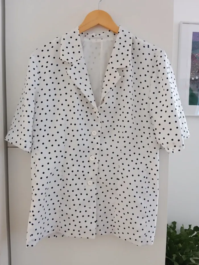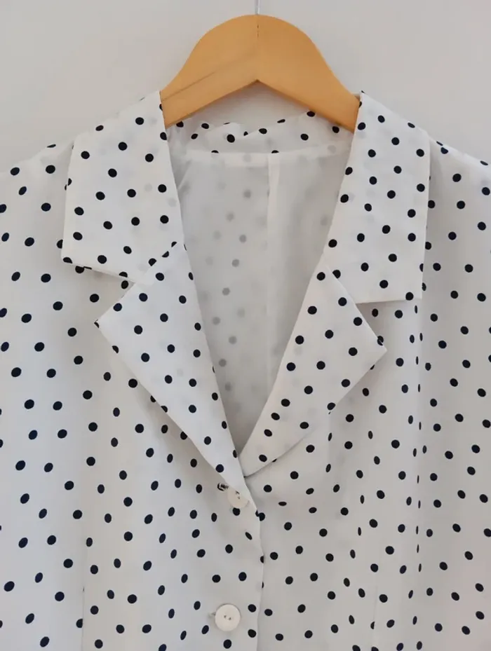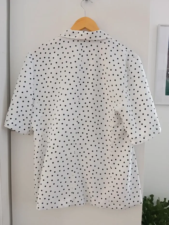 Veste vintage manches courtes Blanche à pois noirs Taille 40/42 estimée
