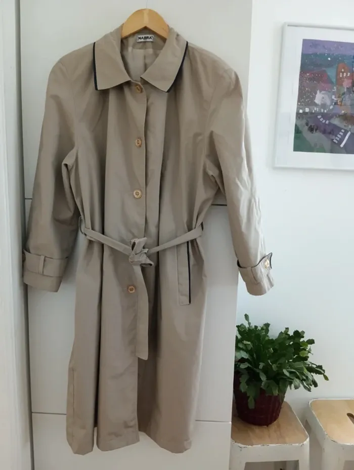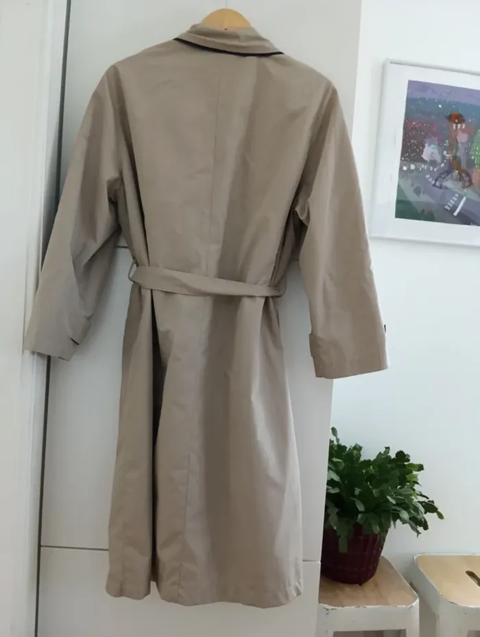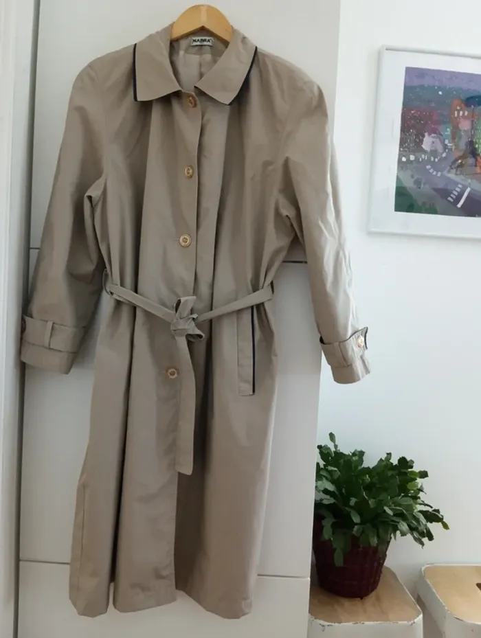 Trench vintage taille 44/46 estimée à confirmer avec les mesures selon l'effet souhaité Beige sable détails bleu marine Fabriqué en France Ceinture assortie Mesures Epaules 47cm Aisselles 60cm Longueur 109cm