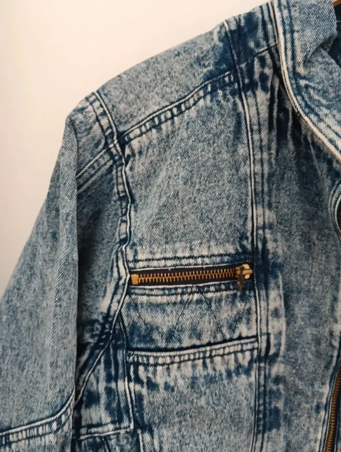 Veste vintage en jean coupe perfecto acid wash - photo numéro 3