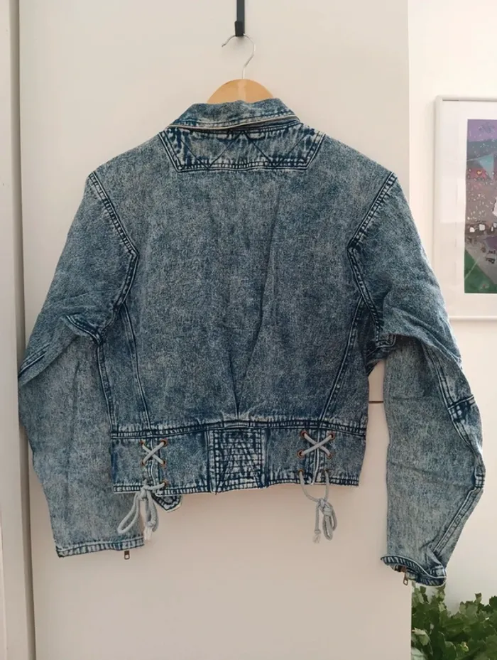 Veste vintage en jean coupe perfecto acid wash - photo numéro 2