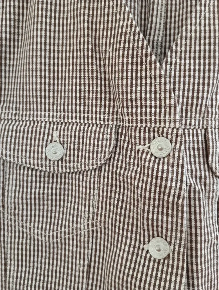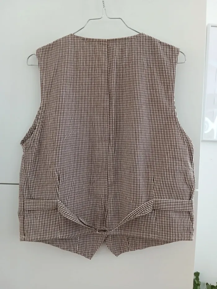 Veste vintage sans manches vichy marron/blanc - photo numéro 7