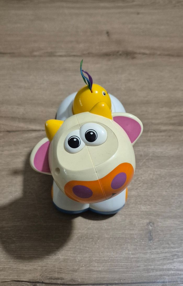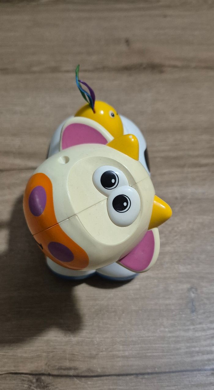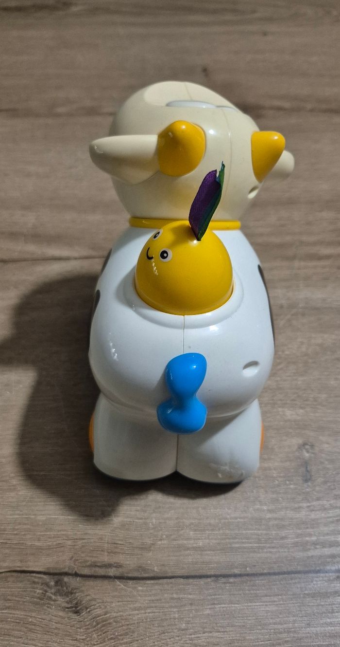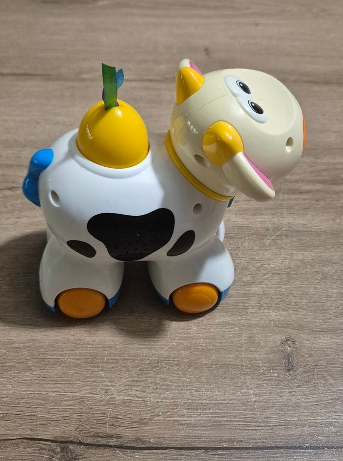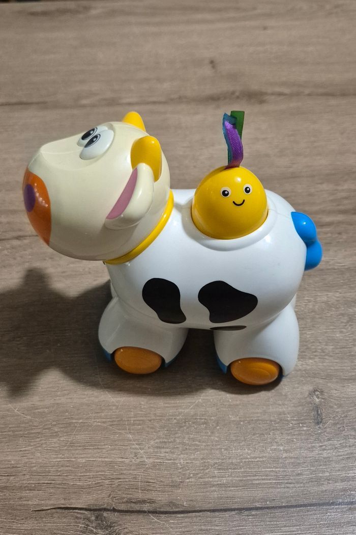 Vache qui avance toute seule et meugle en faisant de la musique lorsqu'on appuie sur l'oiseau jaune sur son dos Sa tête est articulée, on peut la tourner Très bon état