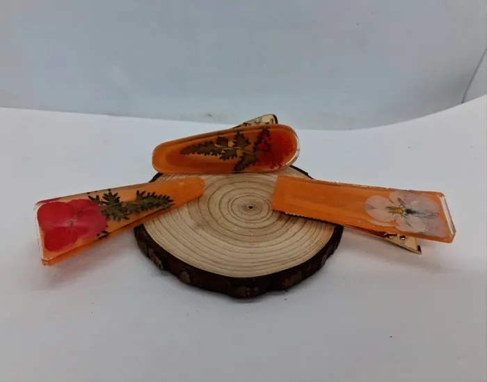 3 pinces en résine et fleurs séchées - photo numéro 1