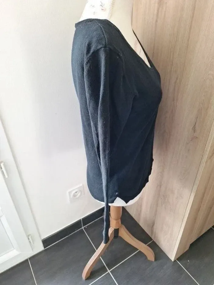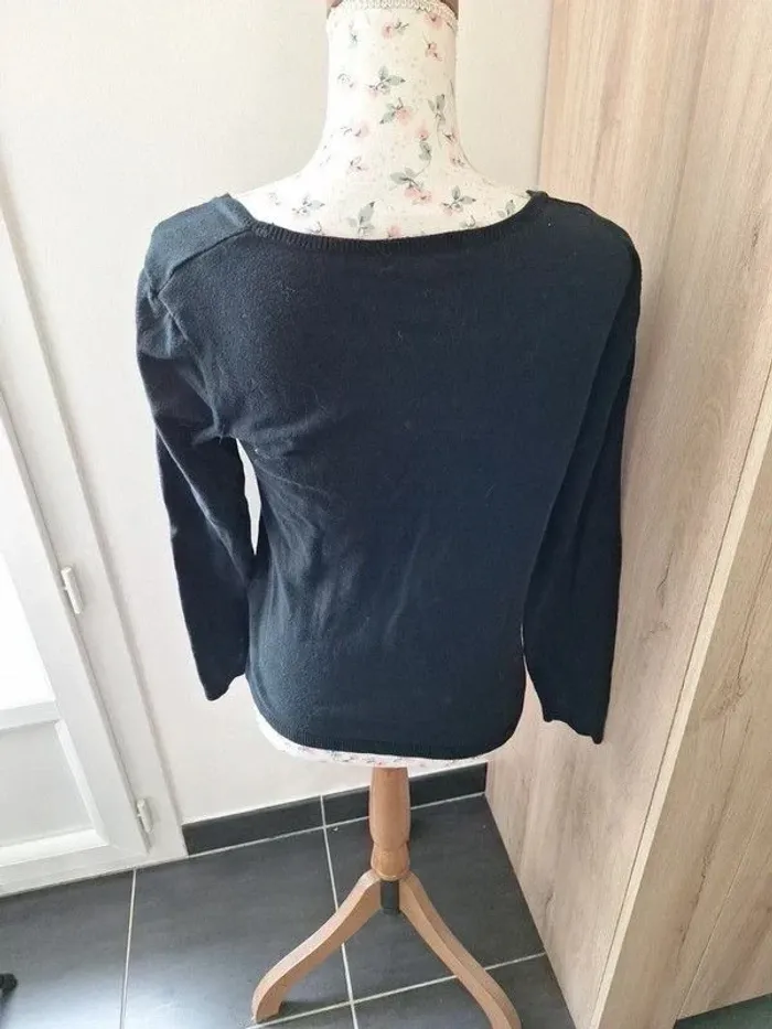 Pull noir taille S de la marque cache-cache en bon état présente uniquement un petit trou cf photo (couture à faire ) #pull #femme #tailles #auree36_Ftaille36