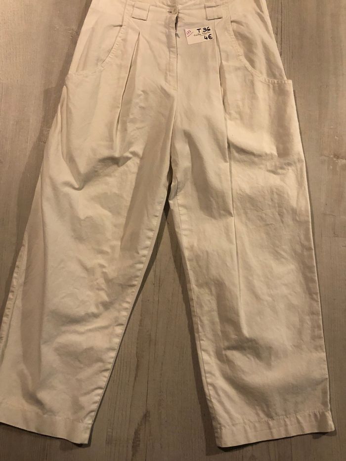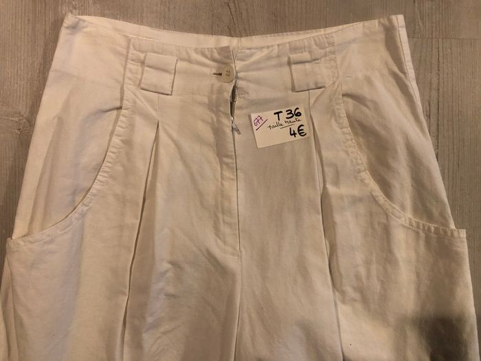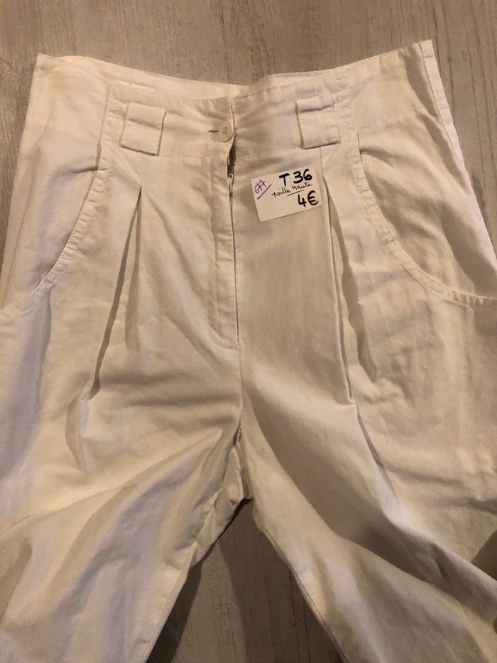 Pantalon court  blanc en toile taille haute T36 - photo numéro 2