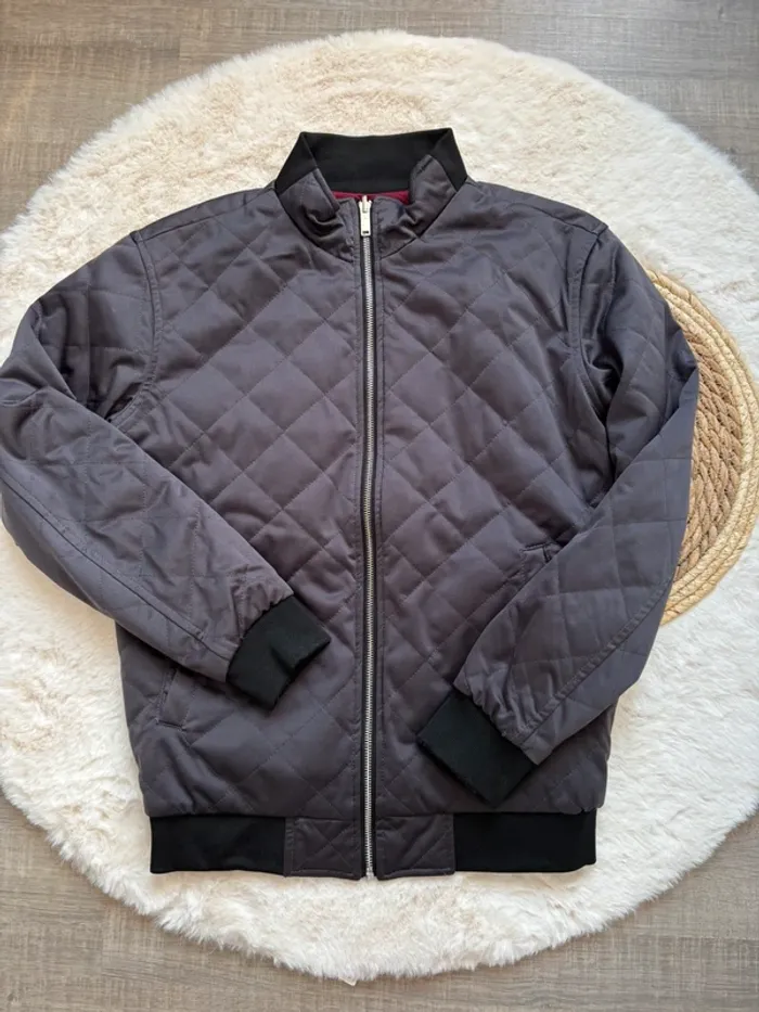 🏷️ Marque : Zara 📏 Taille : S 🛍️ État : très bon état ! Hormis l’intérieur d’une poche qui a été recousue. Veste réversible un côté gris un côté bordeaux Plus d’articles de cette taille par ici ➡️ #amandinevd1603HommeS 📦 Envoi soigné et le plus rapide possible 🚭 maison non fumeur.