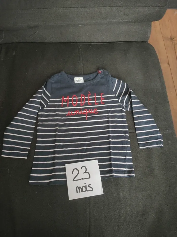 T-shirt manches longues pour garçon 23 mois tape à l'oeil. Très bon état, sans tache ni trou. Maison non fumeur. #lilie092ans