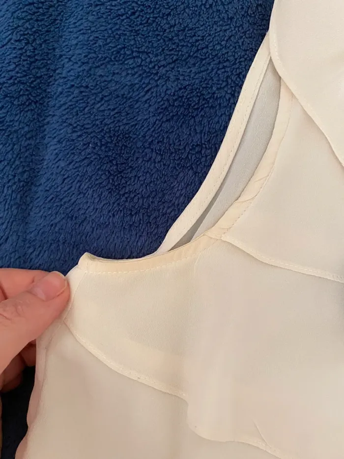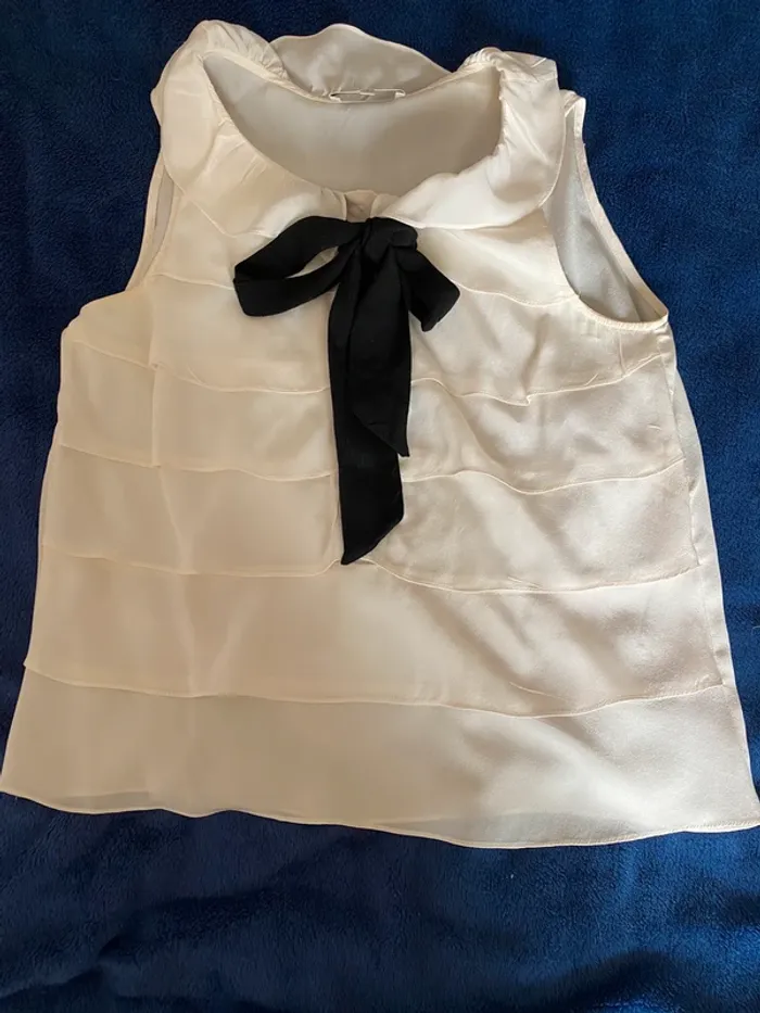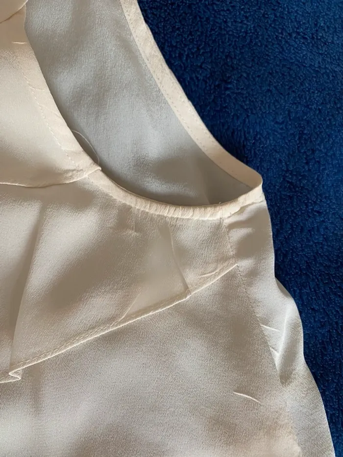 Très beau Haut à volants Sandro en soie Les aisselles ont un peu jaunis et il y a une petite tache qui doit partir au lavage (2 dernières photos) Regardez mon dressing j ai des vêtements #sandro#boutiquelibertie#charlior#comptoirdescotonniers#caroll#graceetmila#ycoo en vente
