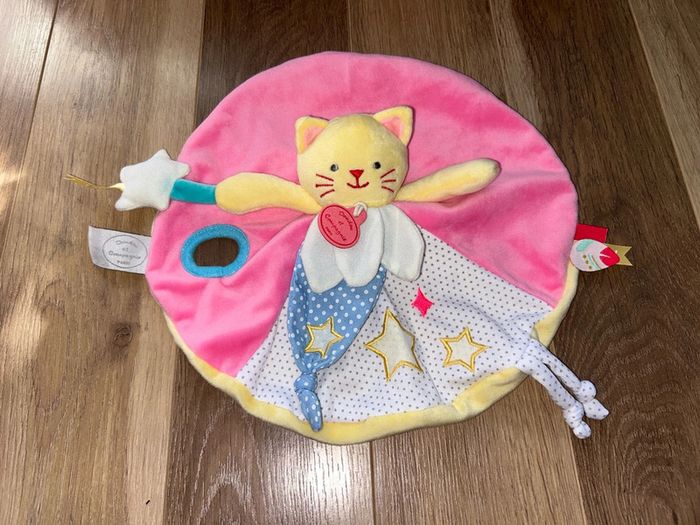 Doudou et compagnie collection Magic doudou plat rond chat rose jaune bleu étoile - photo numéro 1