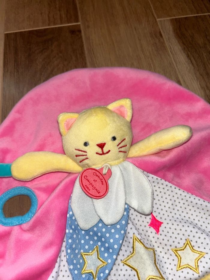 Doudou et compagnie collection Magic doudou plat rond chat rose jaune bleu étoile - photo numéro 3