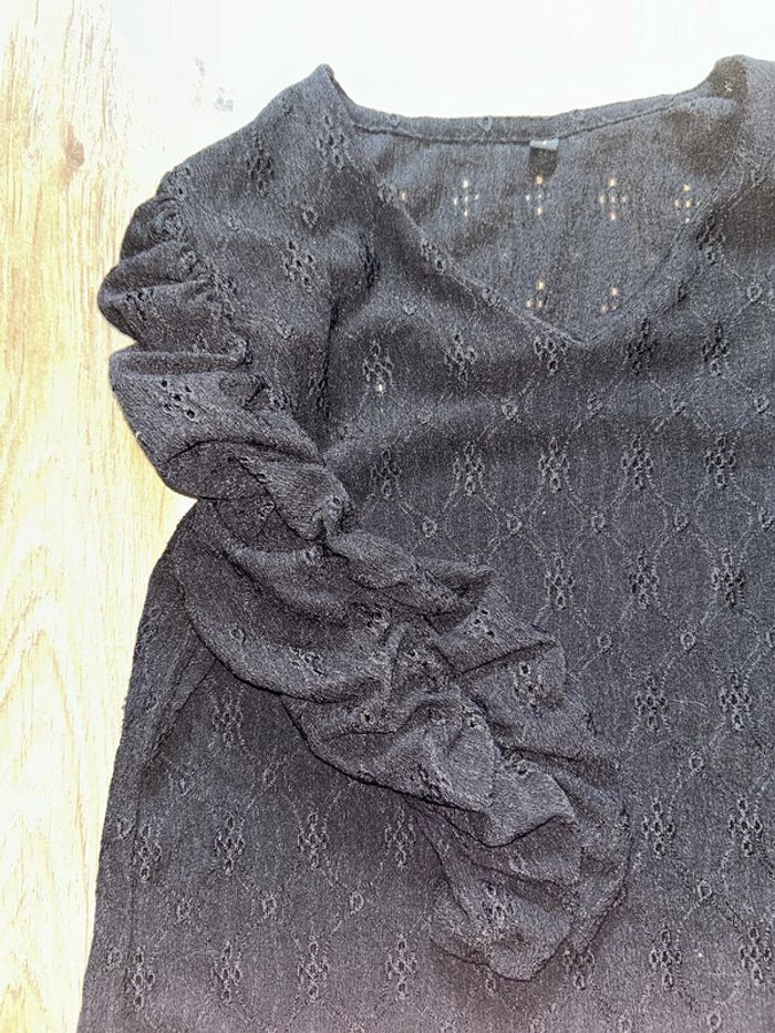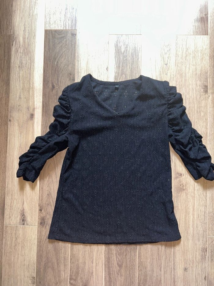 Haut noir broderie manche 3/4 - photo numéro 2