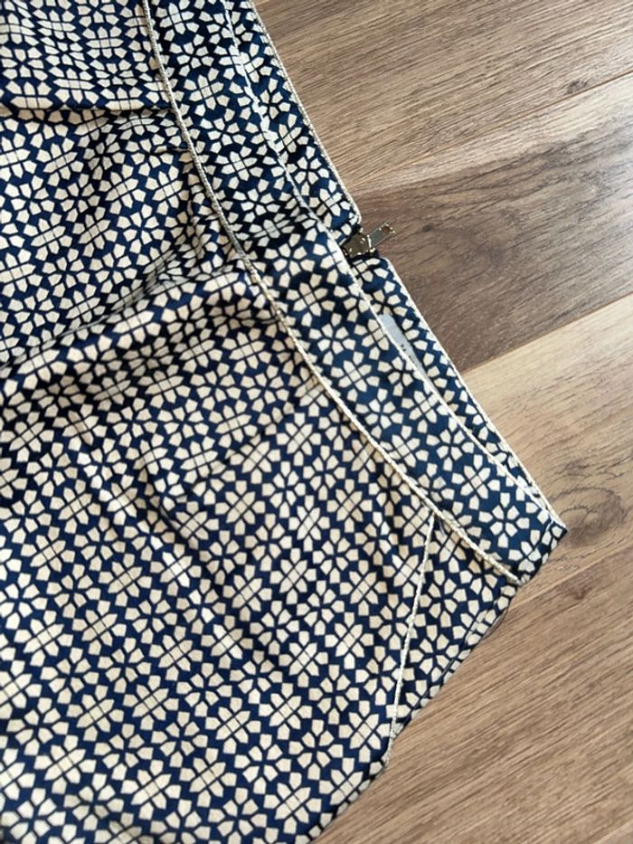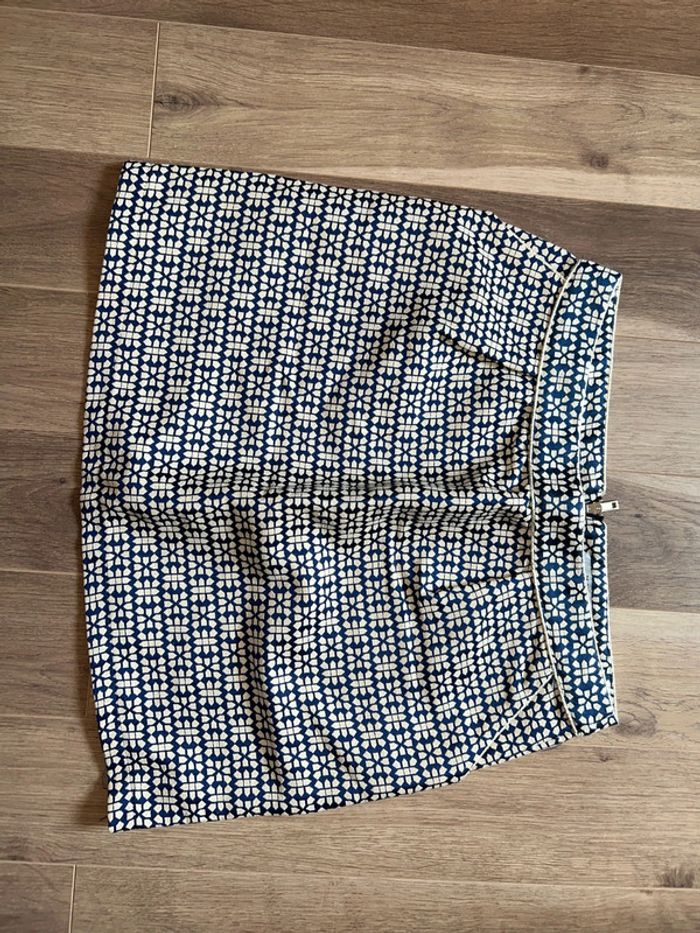 Jupe motif blanc beige bleu lisere or doré Taille M