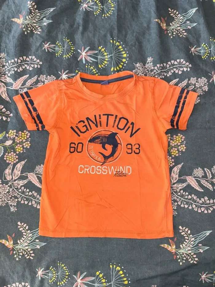 La photo est trompeuse le t-shirt est plus corail et moins vif Il y a une petite tache cf photo 4-5ans 110cm dopodopo #dekoijmemele_garçon