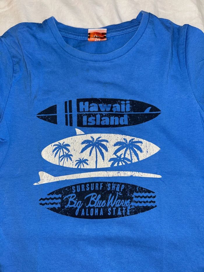 T-shirt bleu, Hawaï, planche de surf, motif Print Craquelé 6 ans #dekoijmemele_garçon