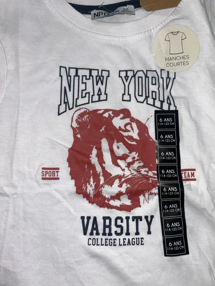 T-shirt blanc avec tête de tigre NEW YORK 6 ans #dekoijmemele_garçon