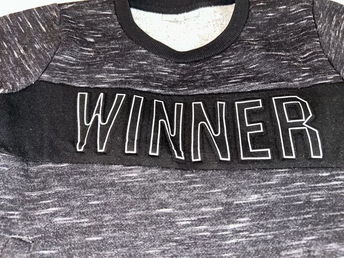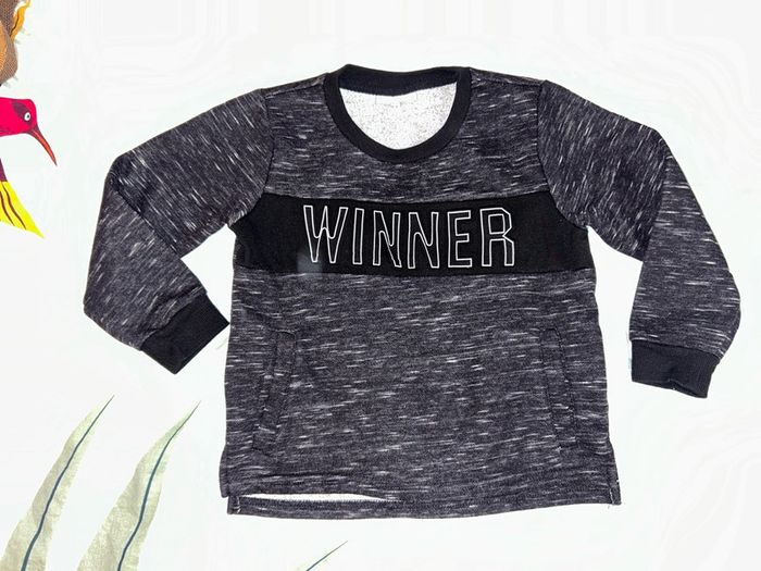 Pull droit noir chine écriture en relief winner 6 ans #dekoijmemele_garçon