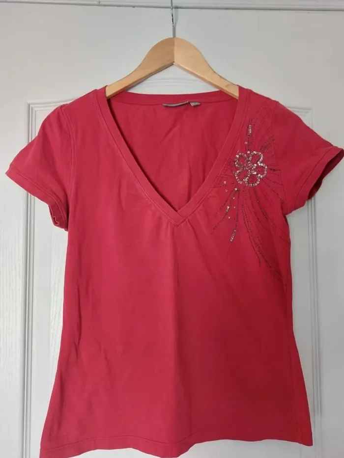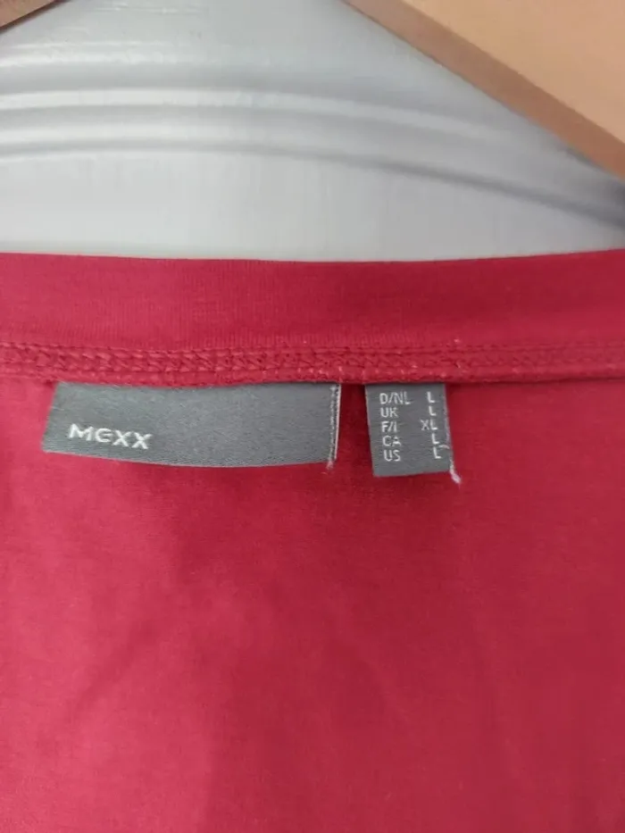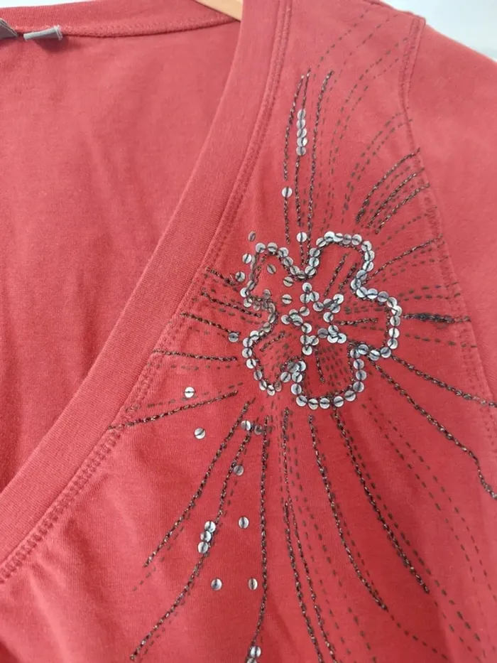 💥Pas d'envoi en Vinted Go Tee-shirt manches courtes avec broderie, couleur bordeaux, col V profond. Taille L marque Mexx. #anchik77femme